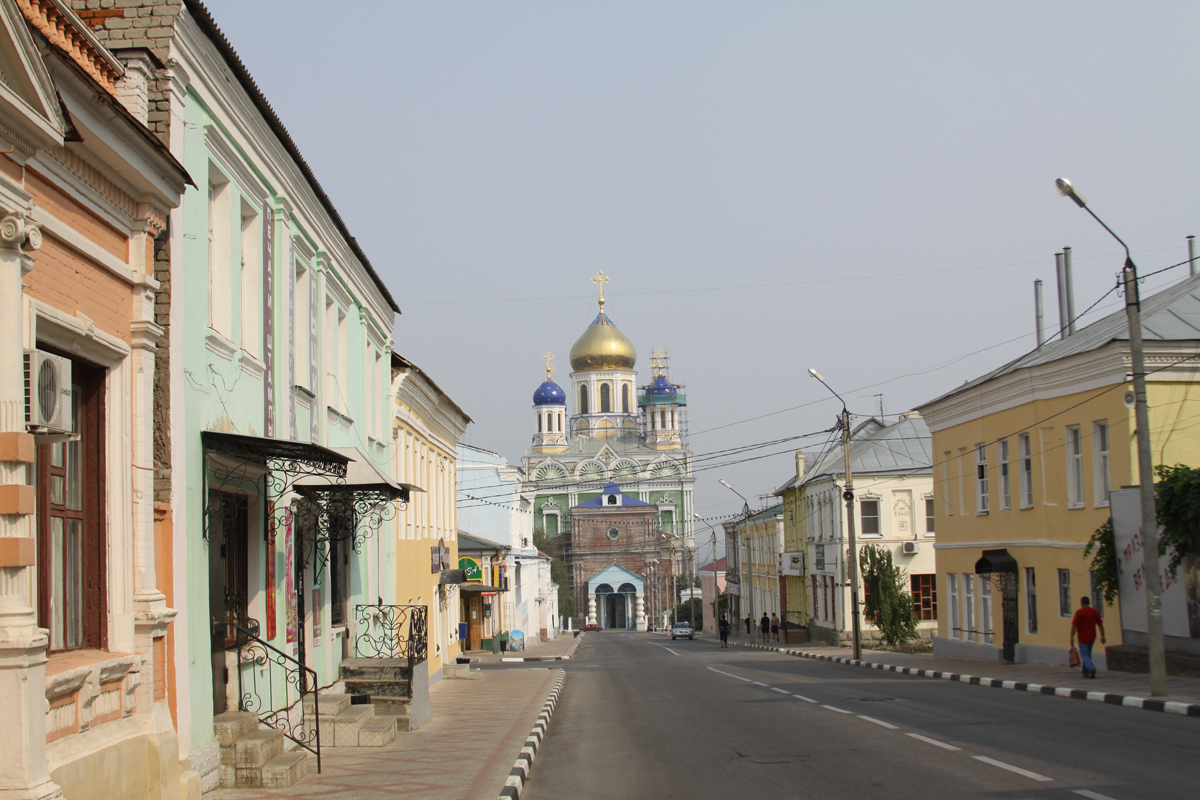 История Ельца героична и трагична одновременно. Много раз его полностью уничтожали враги. По словам И. А. Бунина, которого с Ельцом связывали гимназические годы, город "принадлежал к тем важнейшим оплотам Руси, что, по слову летописцев, первые вдыхали бурю, пыль и хлад из-под грозных азиатских туч, то и дело заходивших над нею, первые видели зарево страшных ночных и дневных пожарищ, ими запаляемых, первые давали знать Москве о грядущей беде и первые ложились костьми за нее", во как завернули ну да ладно едем дальше Вознесенский собор вид из далека с улицы,