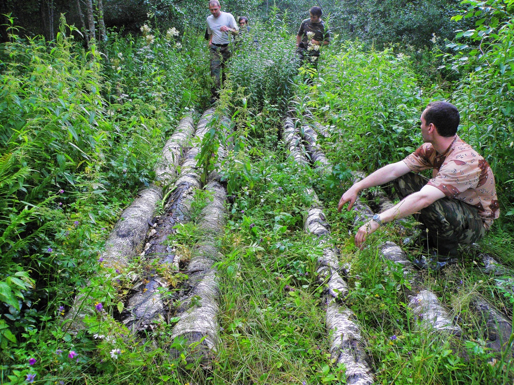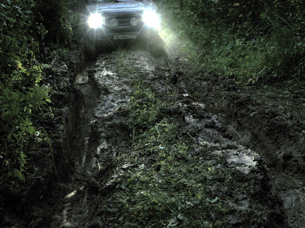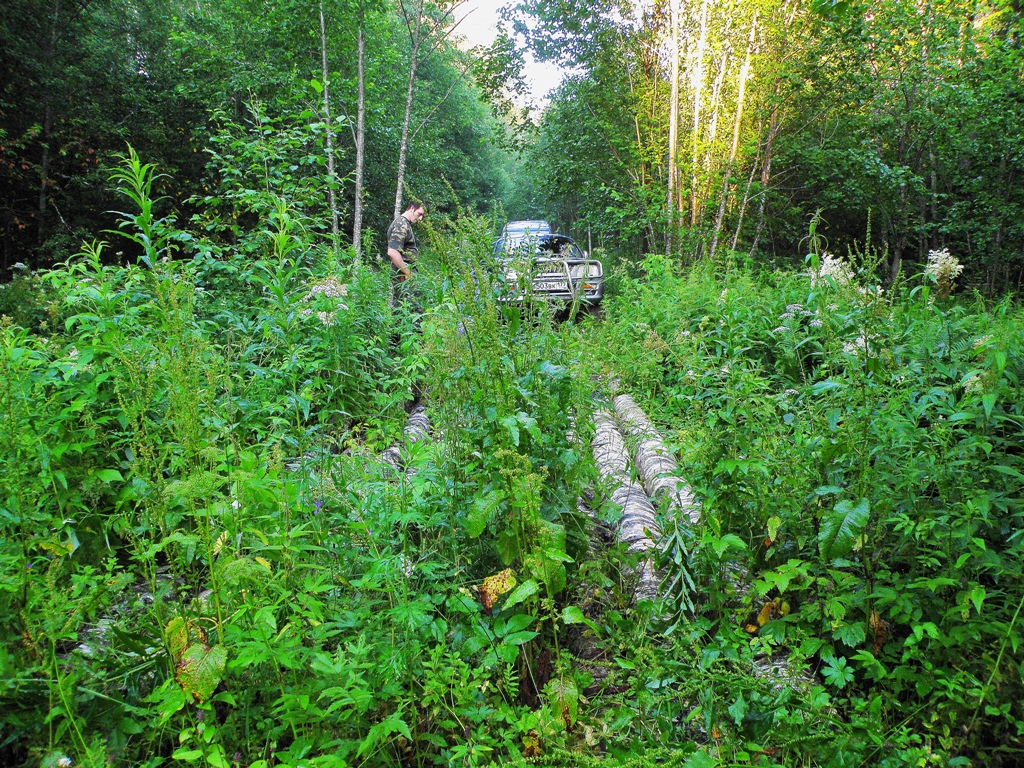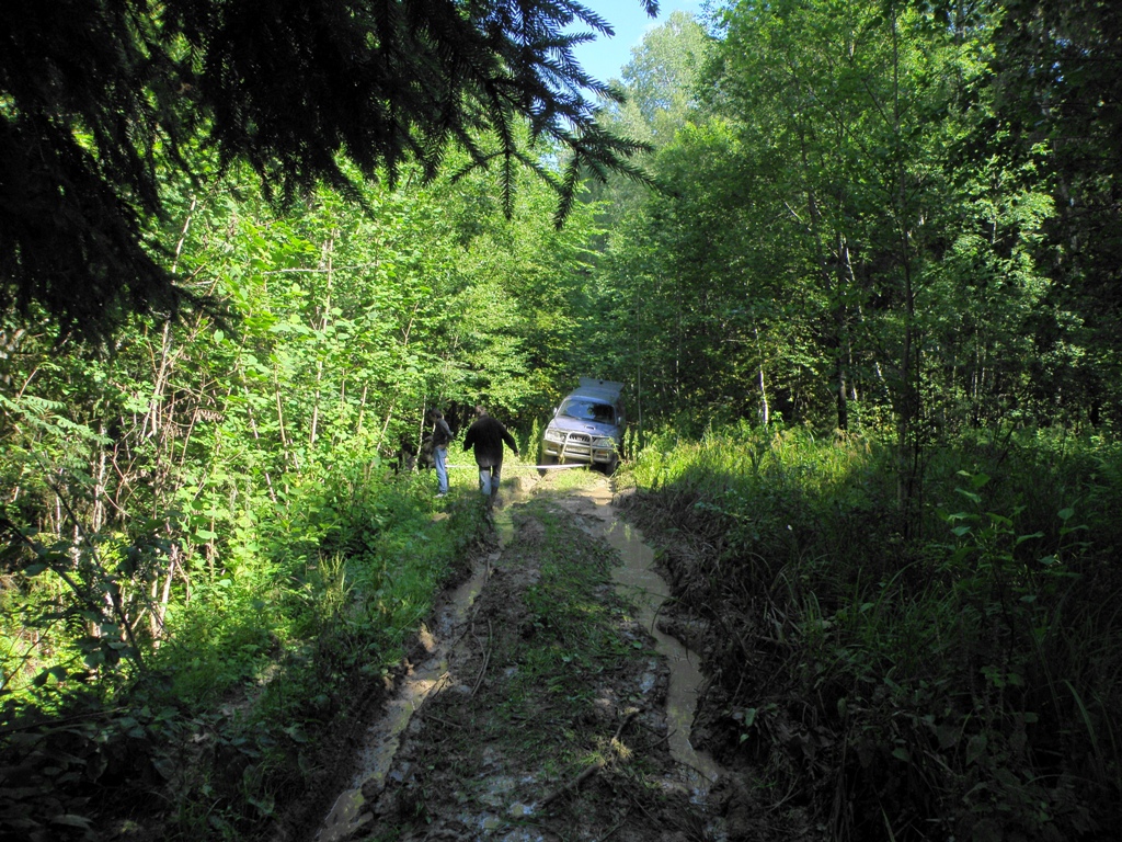 На стандартой старенькой L200 и моём Д3 (тогда ещё никак не подготовленном, кроме резины STT) попробовали мы проехать там по бывшим дорогам. Въехали в лес на заброшенную дорогу... Но недалеко уехали. На неподготовленной машине там не проехать никак. Но на
