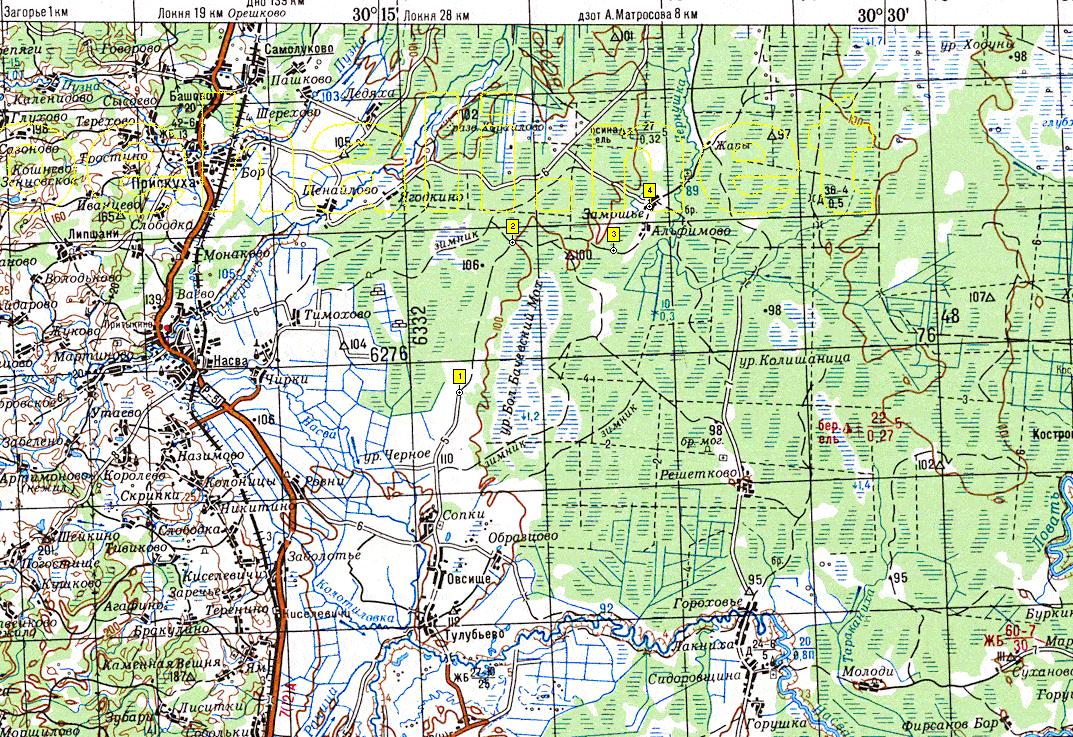 Дима Пилот (спасибо ему еще раз) помог найти старую карту нужного нам места. Привязав ее в навигаторе к координатной сетке, мы сможем двигаться по дорогам, которых уже нет, через деревни, которых тоже нет и в итоге сможем выйти к интересующему нас месту.