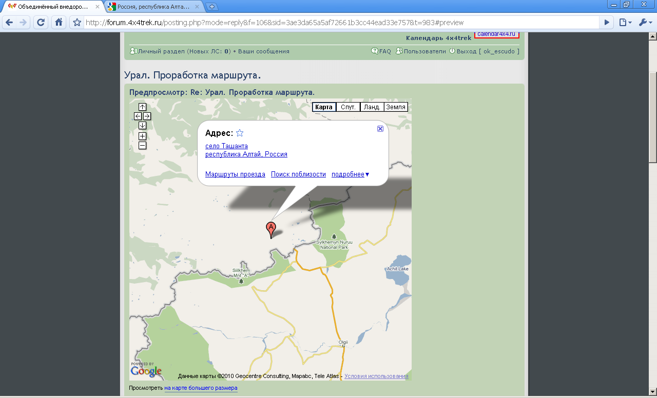 Завершайте редактирование сообщения на форуме как обычно - карта повится в вашем сообщении и будет выглядеть примерно так: