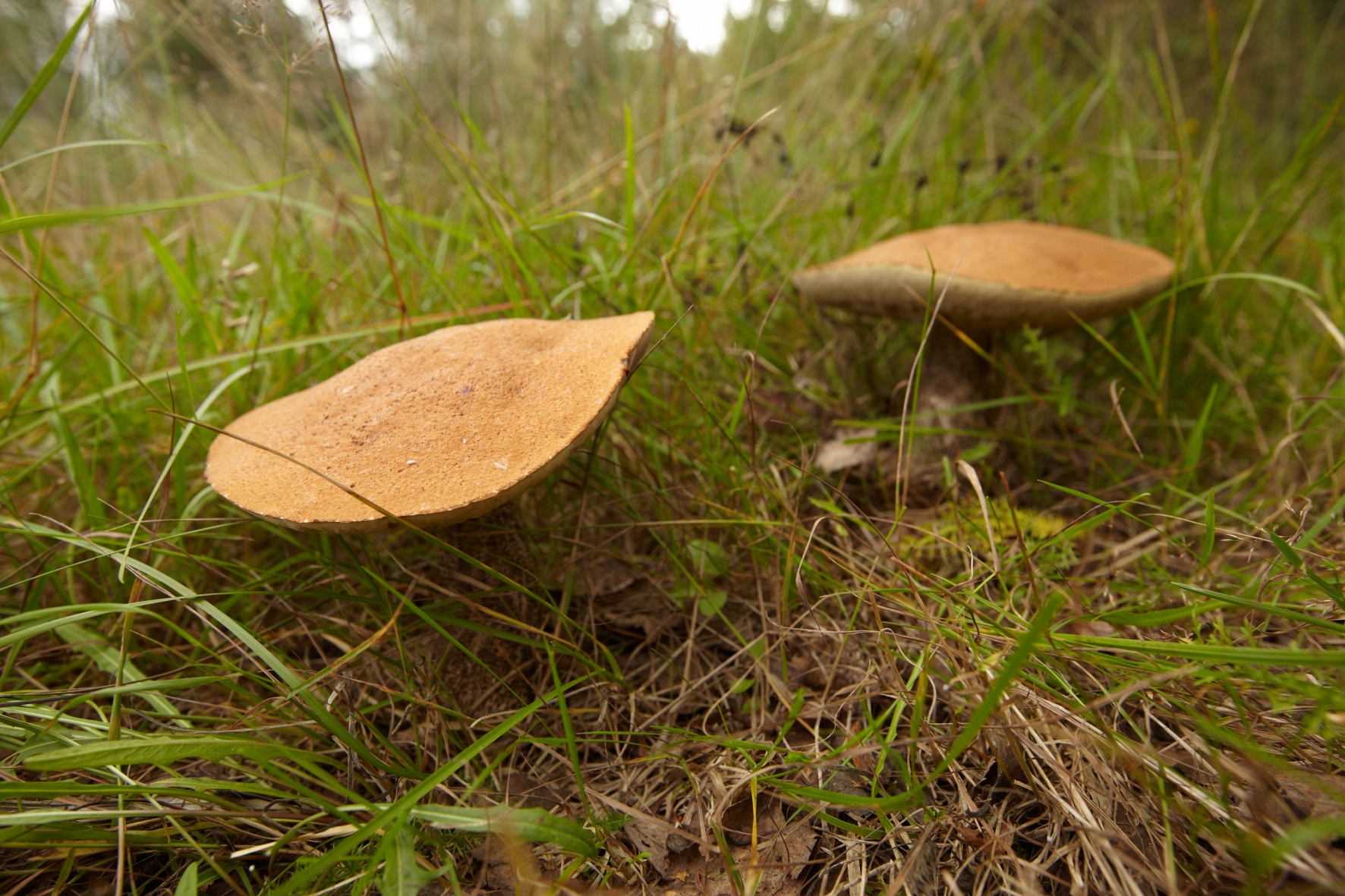 Нашли два больших белых гриба и два огромных подберезовика, все не червивые.