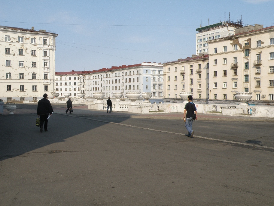 И ещё интересно. Во дворах (а дворы там большие, иногда с пол футбольного поля) нет ни травинки, ни былинки. Всё наглухо заасфальтировано. Идея в том, чтобы зимой можно было убирать и увозить снег. И ведь увозят, весь! А когда не увозили, к подъездам люди ходили по двухметровым траншеям в снегу, на машине было вовсе не подъехать.