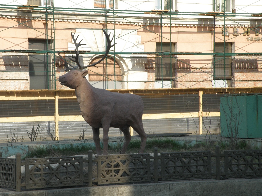 Деревьев нет. Точнее, на "газонах" между половинками проезжих частей (а там большинство улиц по типу "бульвара" сделаны) растёт тщедушная полярная ива.