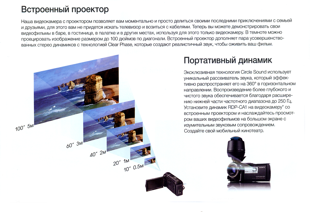 Видеокамера Full HD внутренняя память 96 ГБ.Технические характеристикиВстроенный проектор - Смотрите только что отснятые видеоклипы со своими друзьями: включите встроенный проектор и направьте его на экран, стену, потолок или на любую ровную поверхность