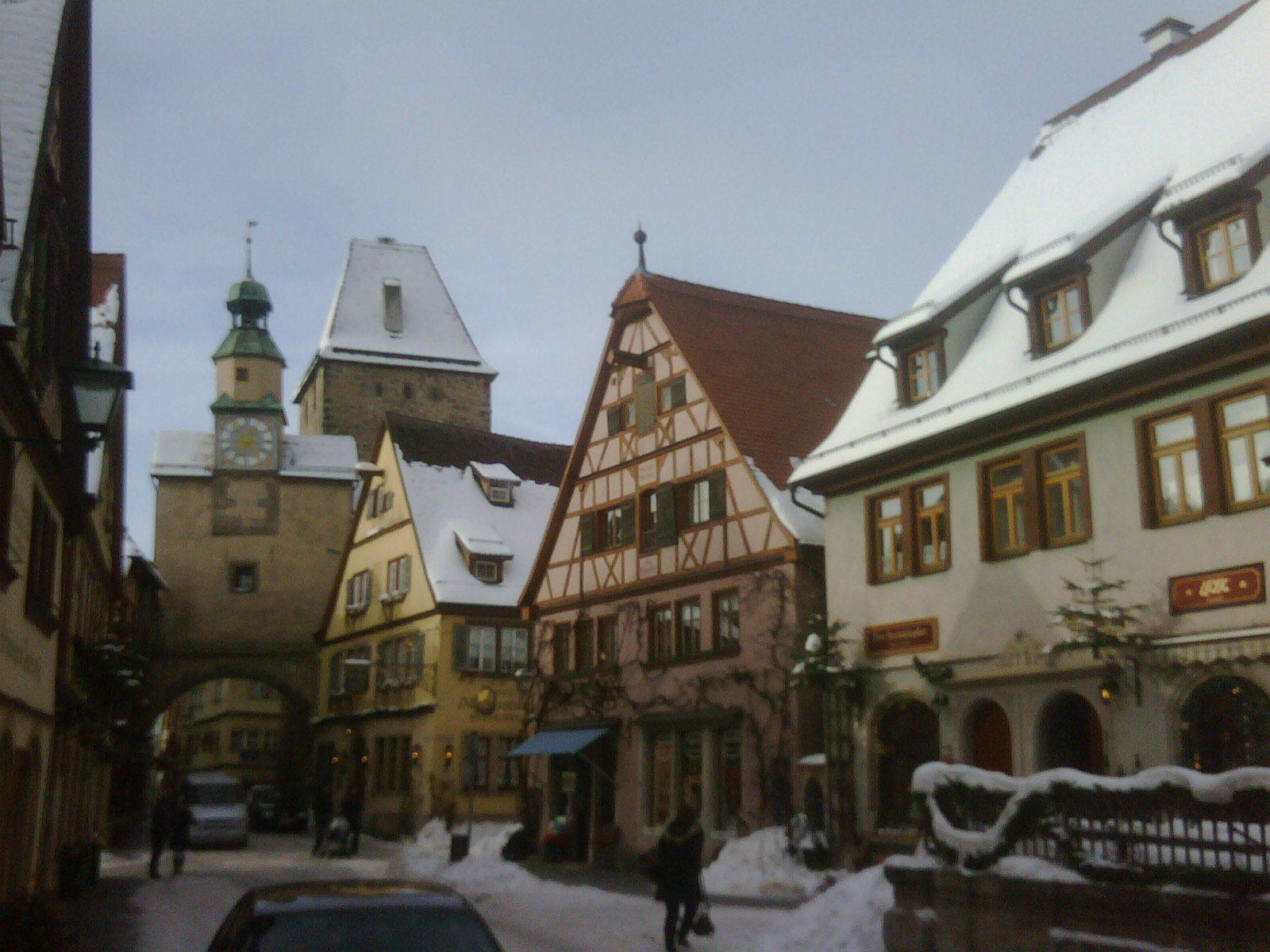 Как и ожидалось, сразу уехать из Ротенбурга мы ме смогли. Засветило солнце и прекрасная рождественская погода заманила нас на прогулку по городу. Началось все с посещения лавки керамических и оловянных сувениров, где продавец поведал нам грусную историю о том, что мастера вымирают, производства закрываются, а прилавки заполняются китайскими кружками, выполненными по массовым технологиям. Мы купили несколько настоящих немецких кружек и оловянную коробочку. Называется почувствуйте разницу. Действительно абсолютно другая вещь.