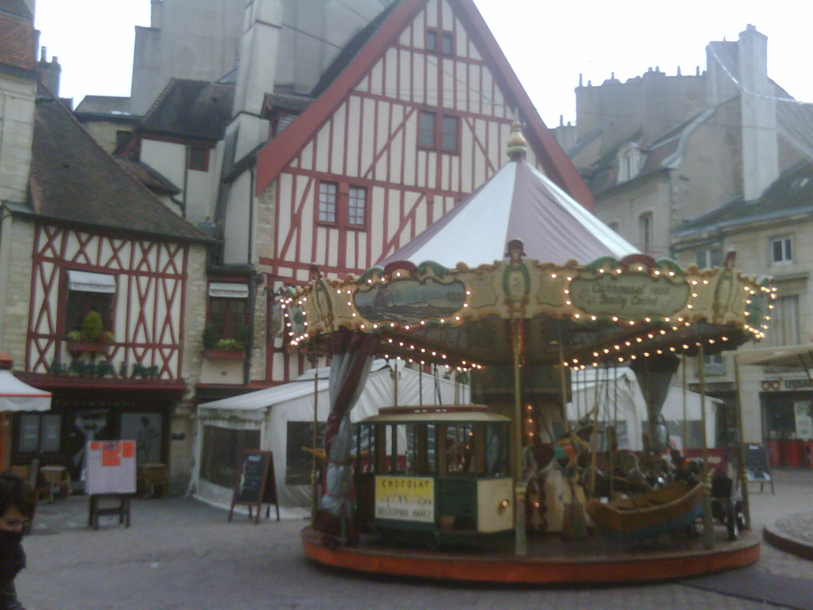 На фоне домика 16 века стоит карусель 19 века, а на дворе 21 век!