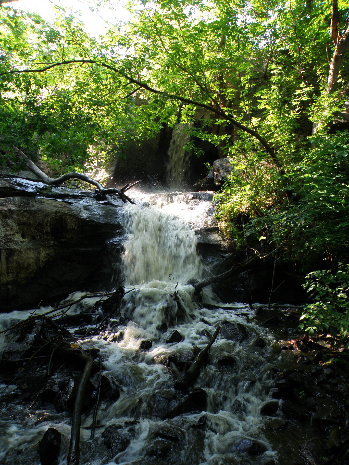Водопад на картинке - это слив из обводного тоннеля первой, "маленькой" ГЭС, которая находилась на входе в каньон.