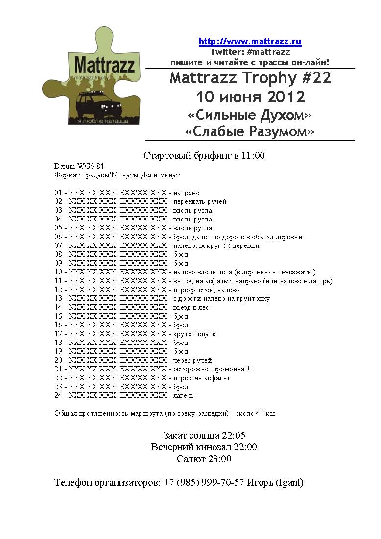 http://www.mattrazz.ru/mt22-doezdingТочное время встречи будет сообщено позднее (следите за форумом), но ориентировочно это 11:00 МСК 10 мая 2012 г.