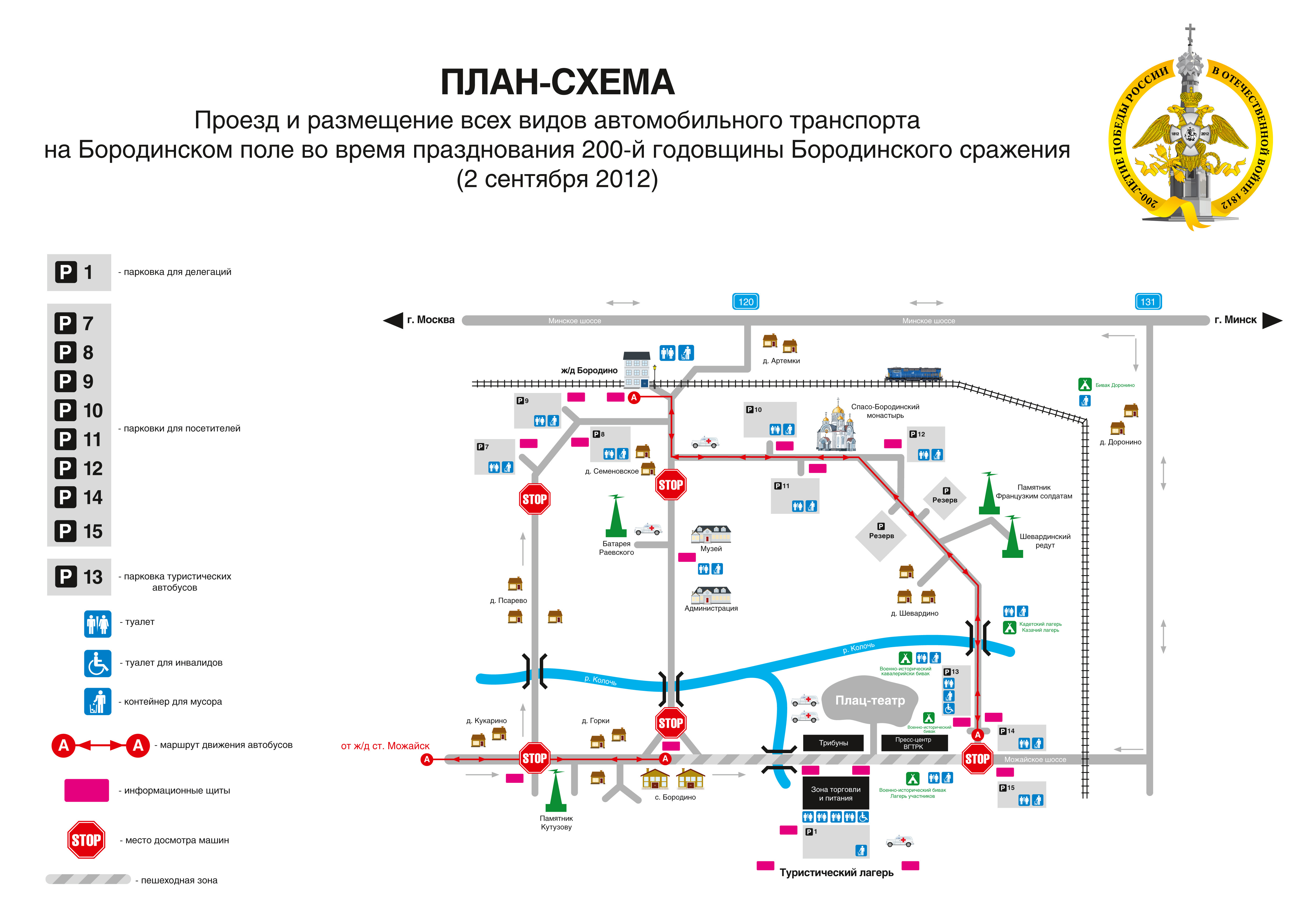 И еще и оттуда же план-схема размещения транспорта и мест мероприятий, очень актуально и надо изучить, т.к. можно или въехать так, что потом не выберешься вовремя, или придется ну оооочень долго идти от парковки до трибун. Картинка кликабельна и открывается в большом разрешении.